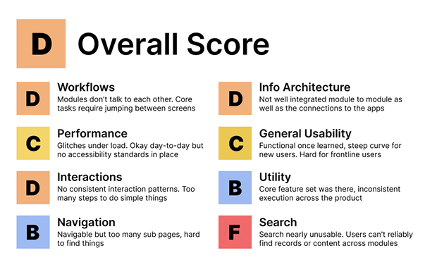 Audited 400+ unique UI components across all products. Found 10 distinct button variants, consistent fonts across modules, different form patterns, and no consistent page layout. The scope of the problem was bigger than anyone had estimated. Nobody was being careless. Teams were solving local problems locally. The system hadn't failed. It had just never existed.